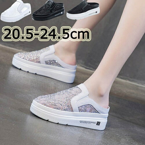 スニーカー 厚底 厚底スニーカー 通気性 レース 透け感 レディース ヒール6cm かかとなし 小さいサイズ インヒール シルバー ホワイト ブラック 普段履き サンダル 春 夏 履きやすい 脱ぎやすい シューズ カジュアル 靴 韓国 美脚 20.5/21.0/21.5/22.0/22.5~24.5 di171g5g5t2